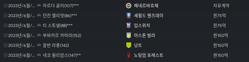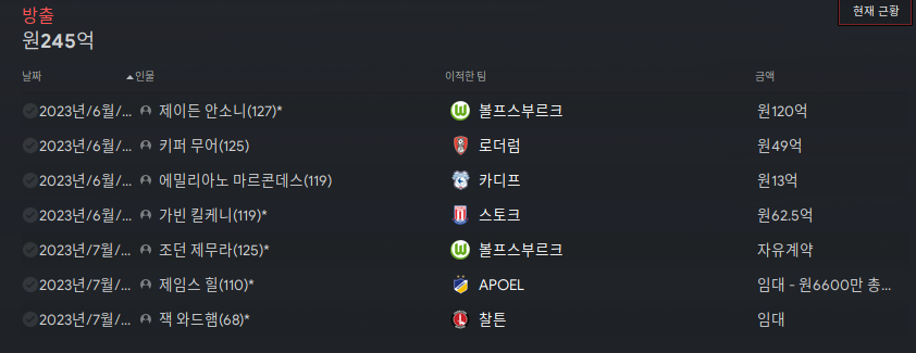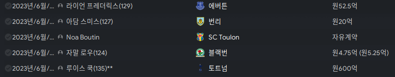 23/07/18 현재까지 영입/방출 기록을 살펴보자.