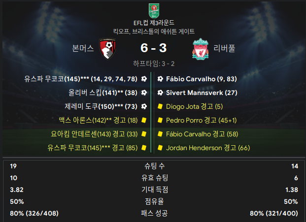 카라바오컵은 첫경기부터 리버풀.. 지금까지 내리 졌는데 마음을 비우고 일부 비주전 선수를 내보낸 것이 답이었는지 이런 결과가 나왔다.