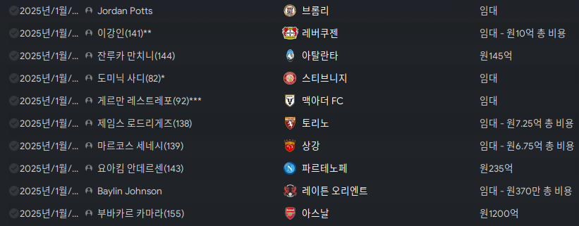 25/01/31 겨울 이적시장이 끝났다.