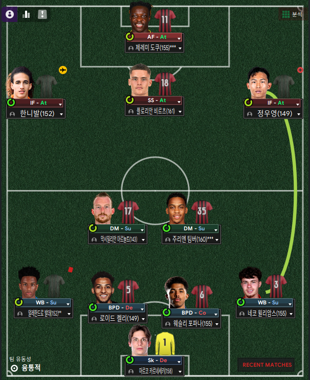 게르만, 신영민, 툰 데위트는 가상 잠재능력 170 이상 선수들이다. 이 게임하면서 대한민국 선수 중 180 잠능을 가진 선수는 처음인 것 같다. 그래서 최대 가격으로 데려왔다.