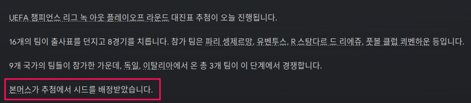 리그전 8위까지는 16강 시드를 받고 9~꼴찌까지는 다시 녹아웃 플레이오프를 치뤄서 이긴 8팀이 16강을 치루는 방식이다. 뭐 이리 복잡한지... 어쨋든 다음 경기는?