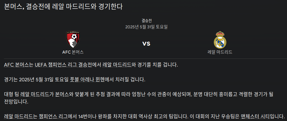 본머스 126년 역사상 챔피언스 리그 진출 및 결승 우승...