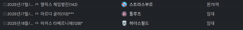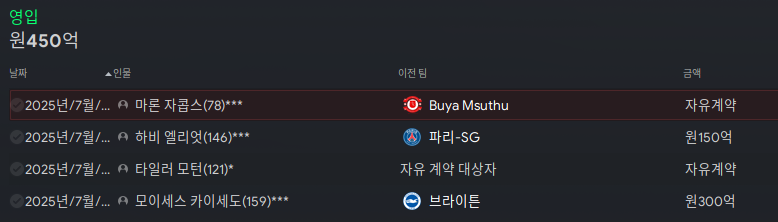 하비 엘리엇은 리버풀에 있다가 생제르망으로 이적간 선수인데, 챔스 우승을 해서인지 대뜸 우리팀으로 이적하고 싶다는 의향을 내비쳐서 싸게 데려왔다. 아무래도 우측 윙어라서 정우영과 플래툰 또는 2군으로 떨어질 것 같다.