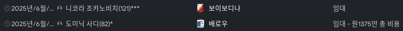 니코라 조카노비치는 영입하자마자 이전팀으로 바로 임대간 케이스이다.