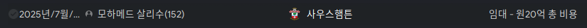 수비수가 부족한 것 같아서 방출한다고 해서 살리수를 임대로 데려왔다. 완전영입 390억짜리다.