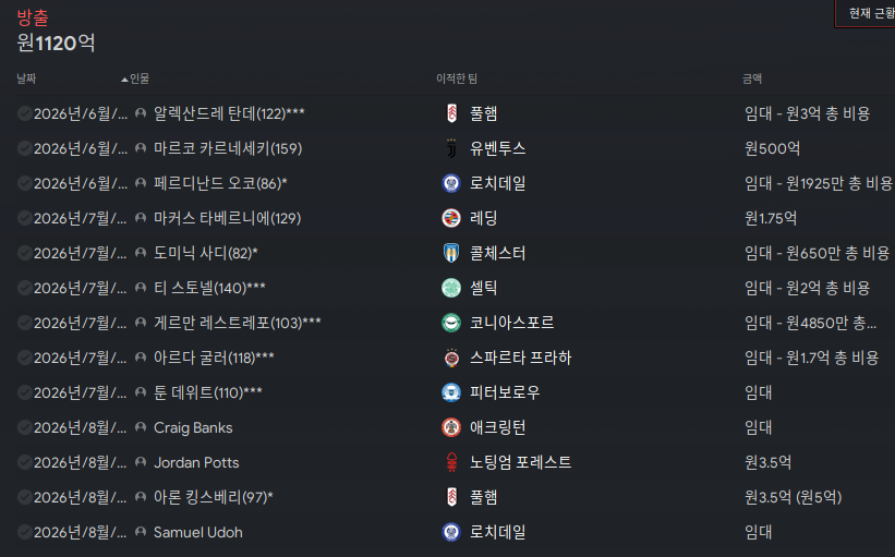 올 시즌 최다방출 팀에 올랐다. 임대를 왜 방출로 치는 건지 모르겠다.
