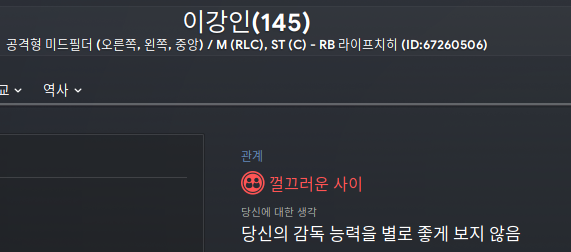 이강인은 내가 오퍼하지 않았는데 마지막 날 라이프치히가 오퍼를 냈기에 좀 고민하다가 팔아버렸다. 능력치도 더이상 안올라서 후보만 전전하느니 가서 날라가라는 식으로 내보냈다고 볼 수 있는데 나가면서 욕을 하면서 나가다니... 기분이 안좋다.
