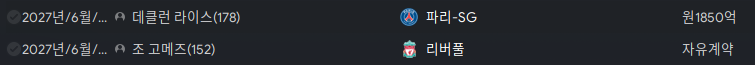 적게 굵게가 이번 컨셉이었다. 데클런 라이스가 웨스트햄에서 뛰다가 파리로 가서 잉글랜드 리그로 데려왔다. 수미 최고 스탯을 가지고 있다. 아마 겨울에 수미를 방출 할 수도 있을 것 같다.