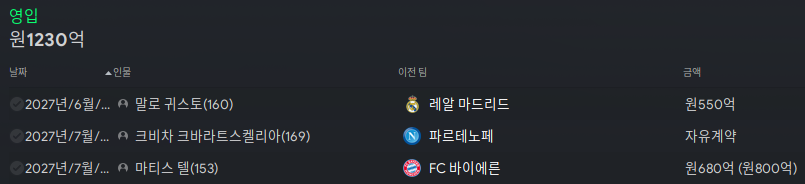 마티스 텔은 윙어들이 많긴 하지만 많이 떠나길래 영입해봤다.