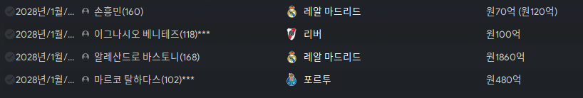 드디어 레알마드리드로 간지 1년만에 손흥민을 데려왔다. 35살 노장이라 싸게 데려왔는데 후보선수로 매 경기 골을 넣을 정도로 아직까지 준수한 실력을 가지고 있다.