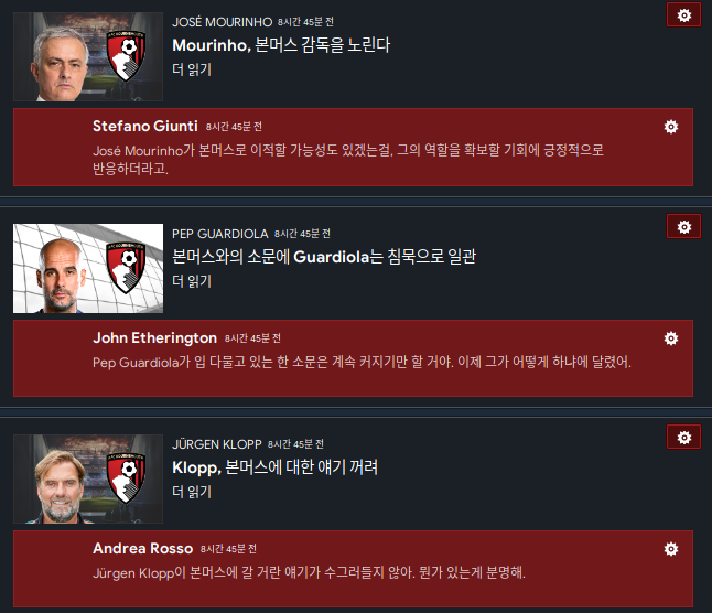 에미리의 본머스와 흠.. 내년에나 맞붙겠네요.