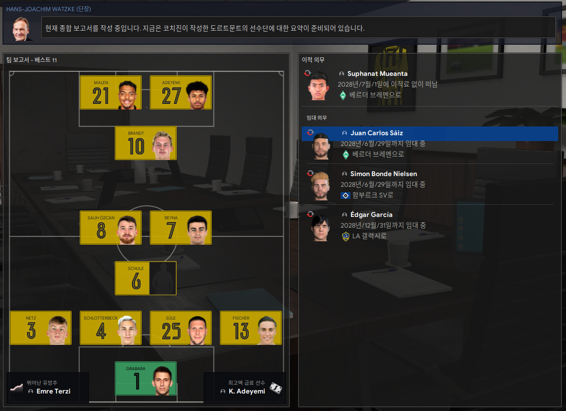 현재 선수단이군요. 아데야미, 슐레, 엠레 잔, 율리안 브란트...