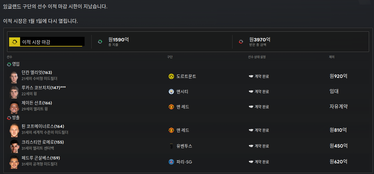 여름에 이어 나좀 내보내줘 하는 선수들이 많아서 또 영입을 미친듯이 해냈다. 대체 리그순위도 괜찮고 컵들도 순항중인데 왜이리 불만이 많은 걸까?