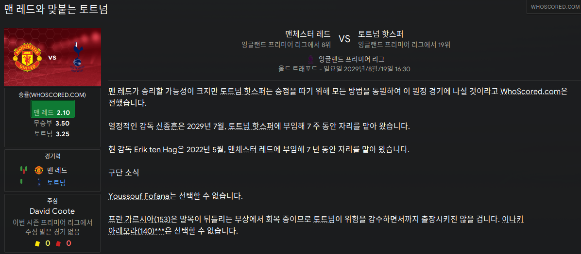 첫 경기가 전 챔피언스 리그 챔피언 맨유로 잡혔다. 제발~~~