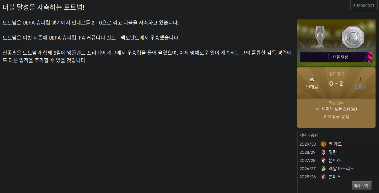 | FM2023 축구감독 생존기 (토트넘편) #29/30시즌 (0) | 2023.01.02 |