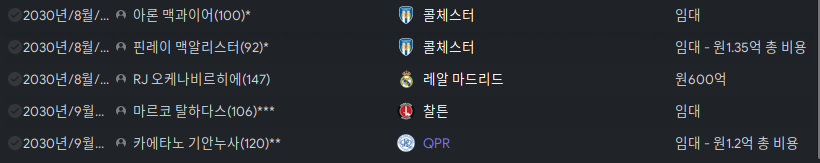 - 크리스티안 아슬라니: 중미인데 후보로만 쓰여서 오퍼가 왔길래 확땡겨서 팔았다.