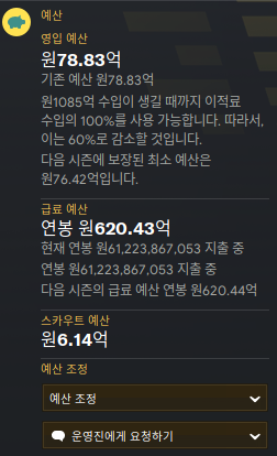 영입/방출 거의 없이 현재 연승 중이다. 관람없이 즉석결과로 진행 중....