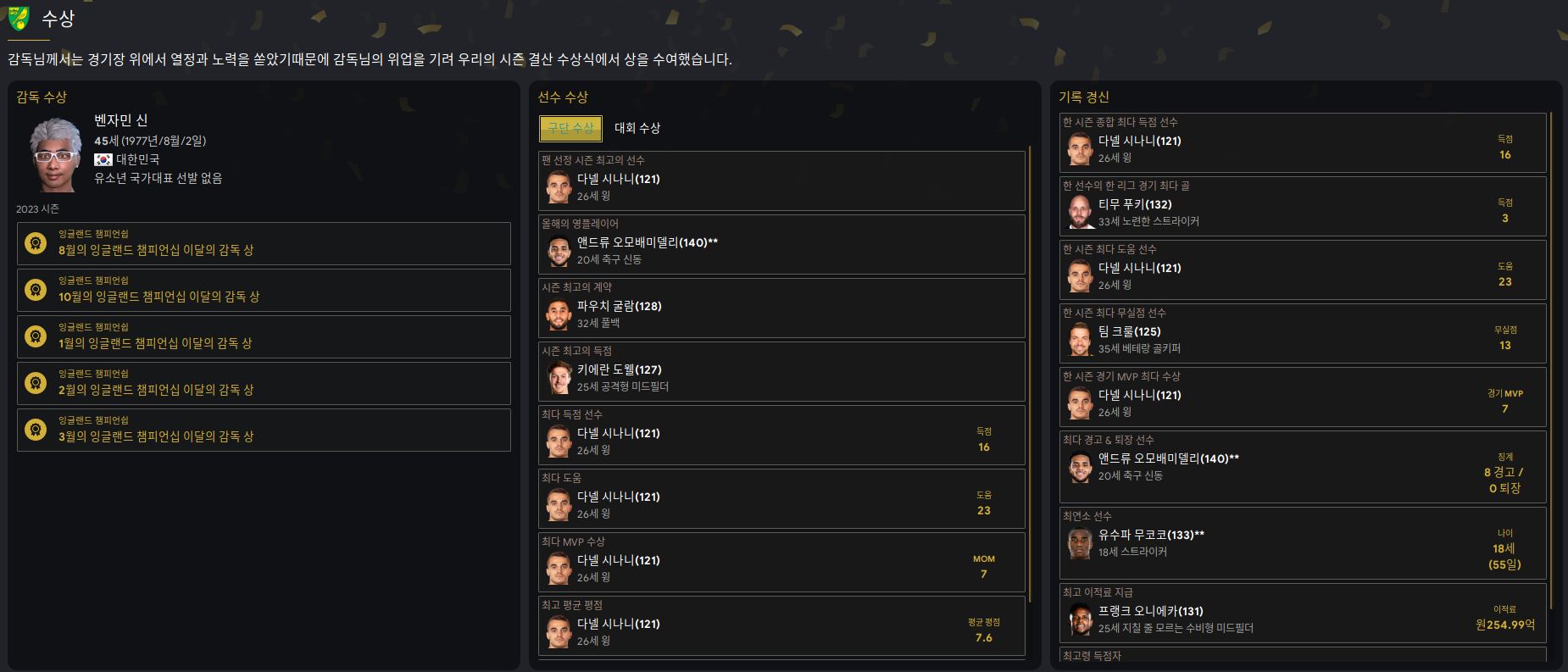 | FM2023 축구감독 생존기 (도르트문드편) #28/29시즌 (2) | 2022.12.31 |