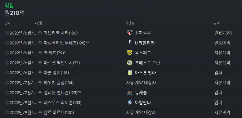 - 암르 와르다: 왼쪽/오른쪽 윙어. 자유로 있던 마지막 130능력대 선수다. 바로 영입완료.