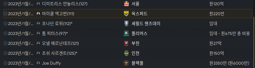 - 또다른 이적버그 선수는 현재 임대상태라서 6월 9일 합류한다.