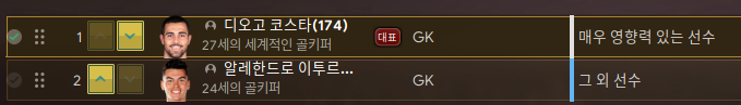 골키퍼는 디오고 코스타가 주전 / 알레한드로가 후보로 뛴다.