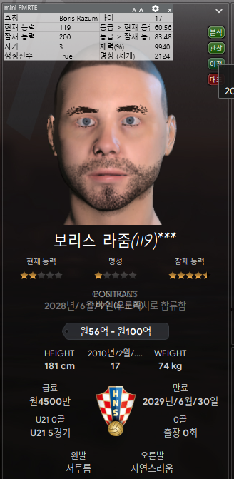 5. 보리스 라줌(DR): 다음 시즌에 오기 때문에 아마 다음 시즌에도 설명할꺼지만 나이 때문에 내년에 합류한다. 잠능은 메시를 능가. 17살 나이에 119라뉘 크로아티아 선수다.