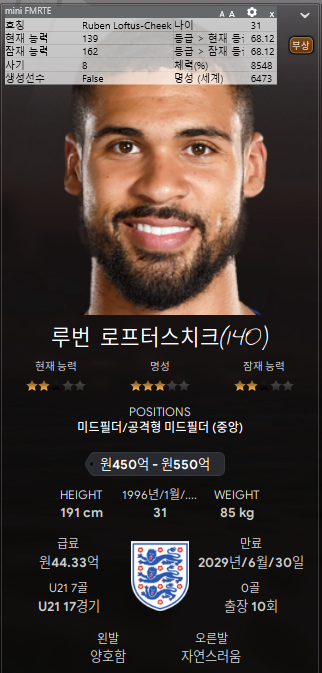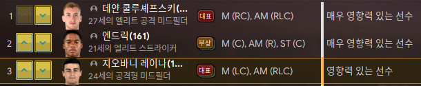 1. 루번 로프터스치크(DM,MC,AMR) - 가끔 경기에 뛰게 해줬는데 막판에 불만이 떴다. 나이도 있고 능력치는 떨어지고 그래서 방출했다.