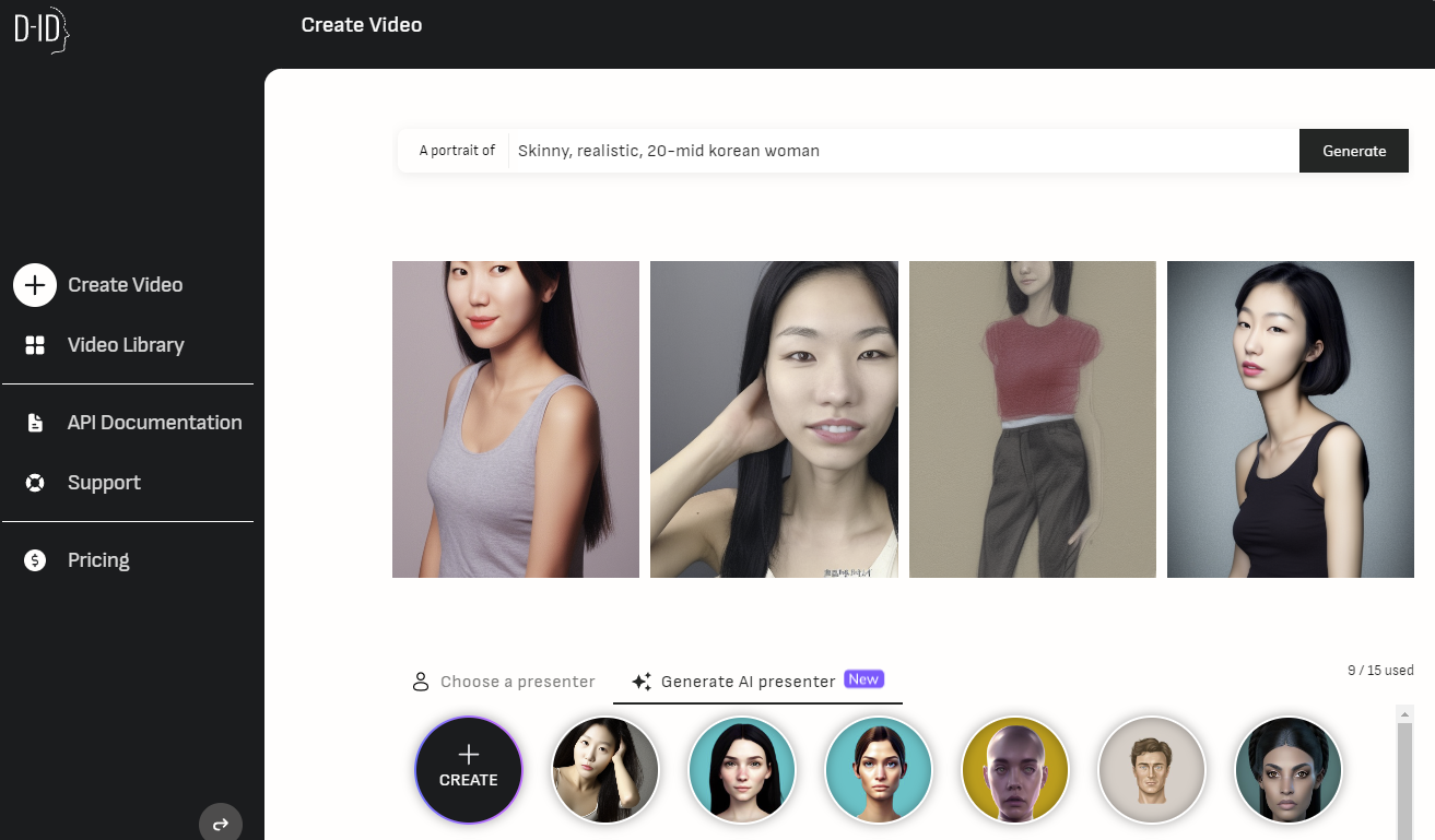 유튜브 강좌영상에는 없지만 Studio D-ID에서도 MidJouney처럼 AI로 인물을 생성해준다.