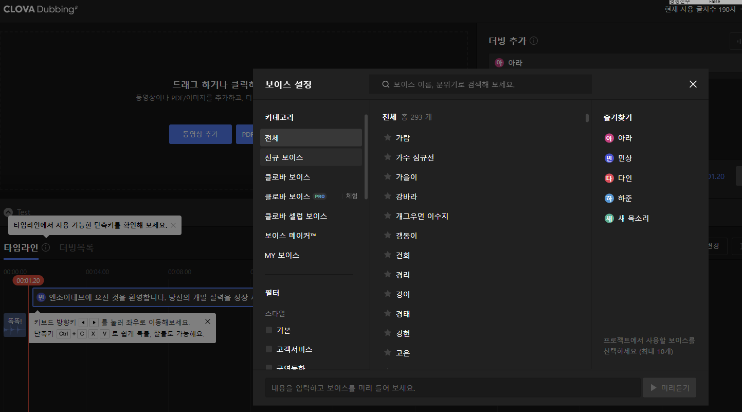 3. 작성된 스크립트를 클로바보이스에 더빙시킨다. 유인나 목소리로 하려고 했는데 돈줘야 하는 것 같다. 안보인다. 더빙된 음원을 Mp3로 내려받는다.