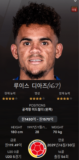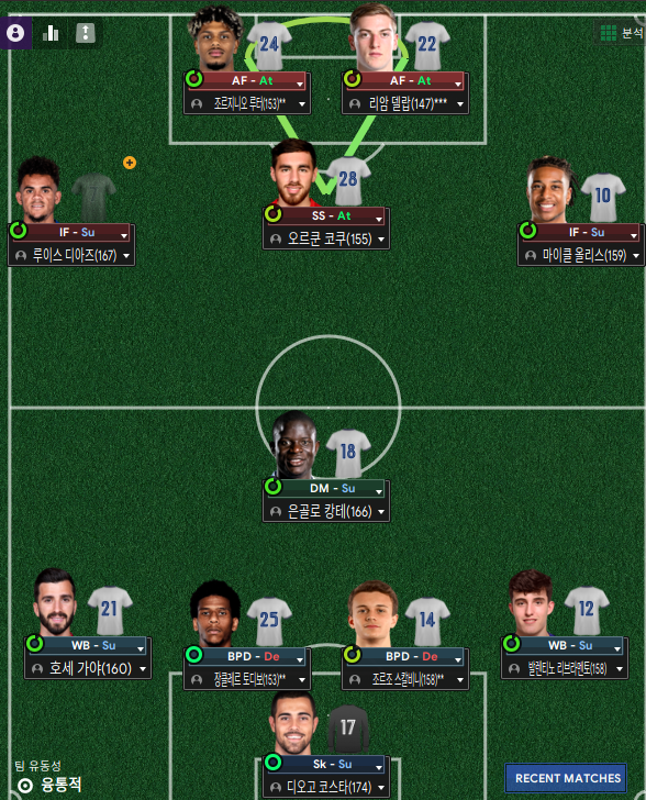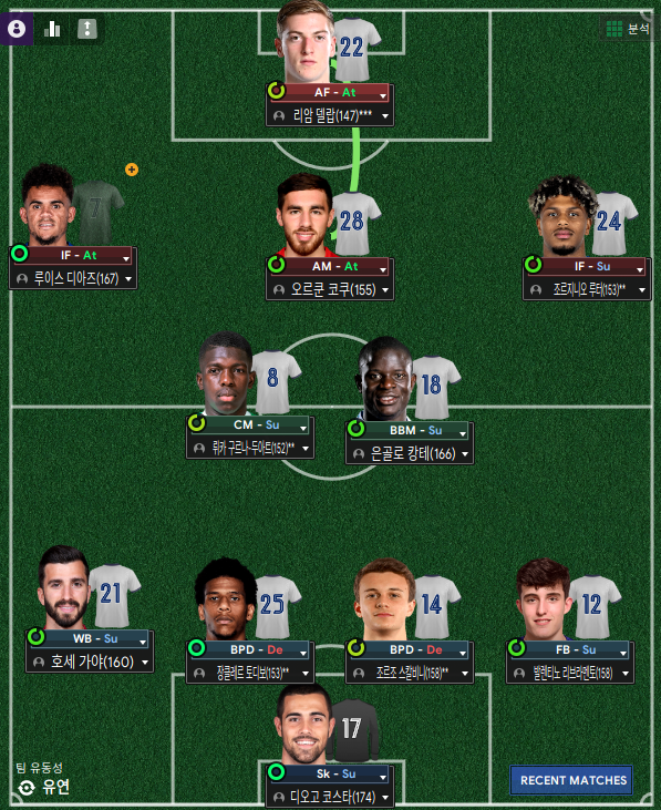 5. 루이스 디아즈(Luis Diaz; AML) - 디아즈가 리버풀에서 방출된다는 소식과 함께 뮌헨에서 이강인 오퍼가 들어왔다. 그래서 왼쪽 윙어를 교체했다.