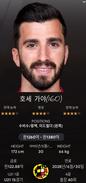 6. 호세 가야(Jose Gaya; DL/ML/AML): 왼쪽 전천후 선수지만 DL 주전이다. 원래는 뮌헨에 있던 알론조를 최소방출금액으로 데려오려고 했는데 뮌헨 재계약으로 선회하면서 영입실패 되어 30살 먹은 가야를 데려왔는데 첫 경기에서 잘 해주었다.