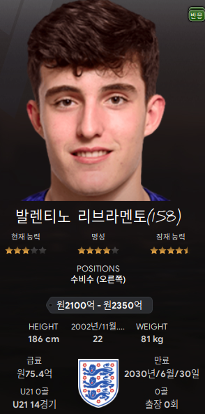 4. 마이클 폴(DL/AML; 126/180) - 고무인간 유망주. 왼쪽 풀백 유망주가 많은데 아직 주전급까지 성장을 하지 못하고 있다. 이 녀석은 나이도 어린데 벌써 126이다. 과연~~