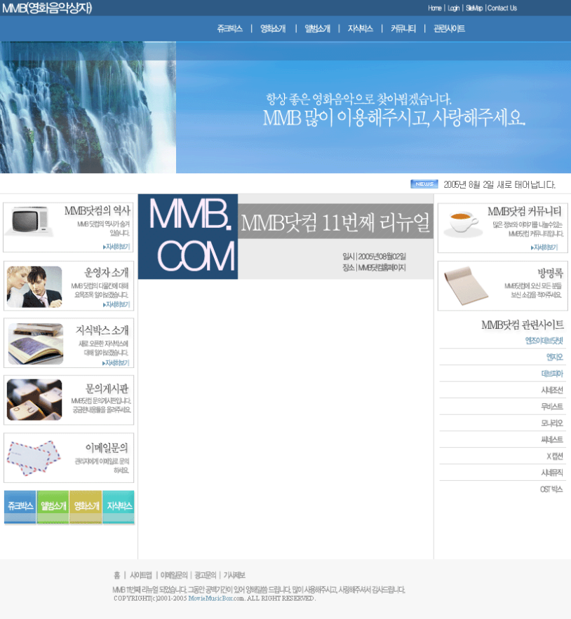 영화음악박스(MovieMusicBox.com)도 같이 운영하던 시기였던 것 같습니다. 이때까지만 해도 저작권에 대한 법률이 제정 전이라 마구 운영했던 시기입니다. 저는 Only 영화음악만 업로드해서 재생기능 서비스만 제공했습니다.