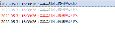 // 로그레벨에 따라 전경색(글자색)을 분기하여 처리합니다.