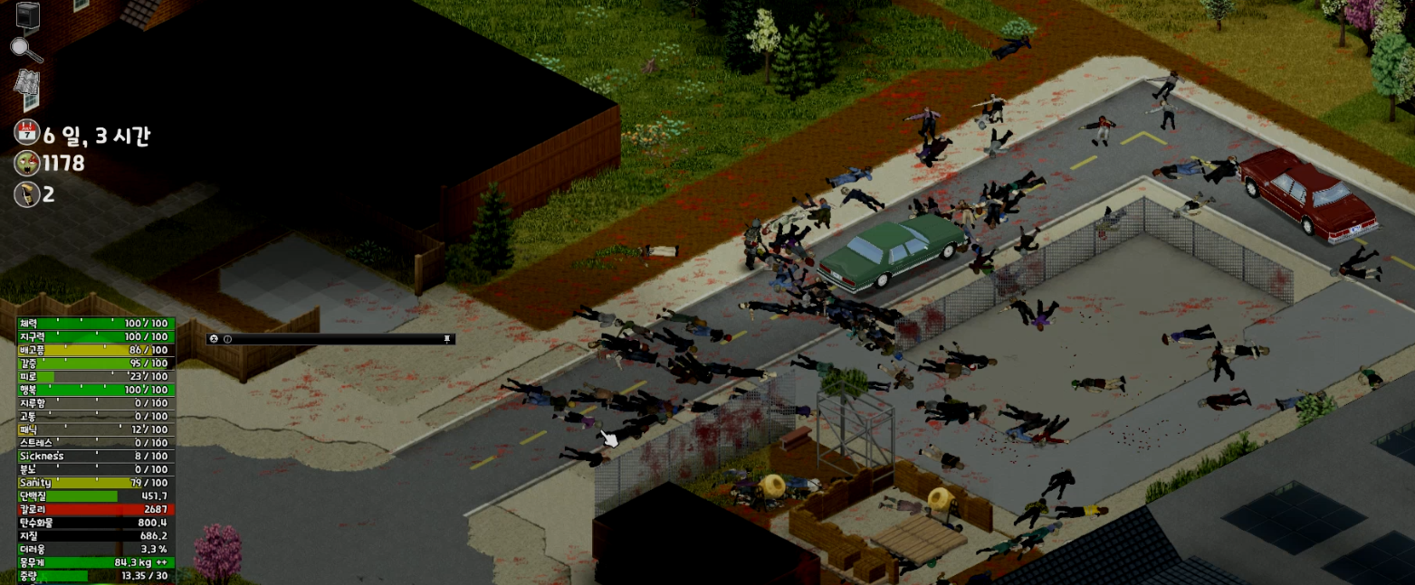 내가 좋아하는 치킨집에 바리케이드가 있길래 제거하고, 좀비정리하고 마트 물건을 싹쓰리하자.