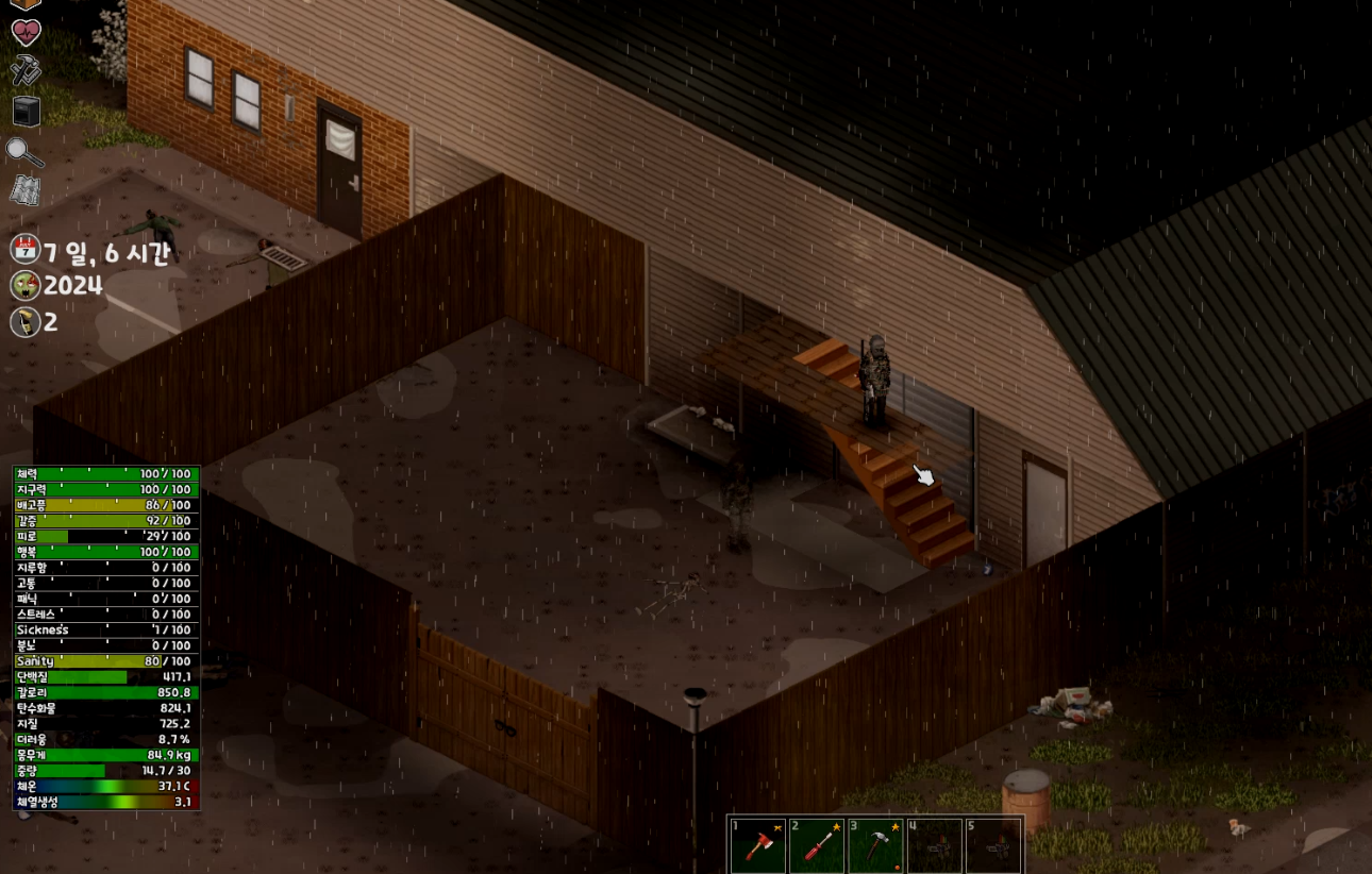 이전 이야기 프로젝트 좀보이드 - 트렐라이 생존기(2) 3일차 자고 일어났더니 새벽. 좀비에게 물린 것이 바로 감염으로 이어진 것 같다. 빨리 탄약을 수급하고 좀비백신을 찾아야 할 것 같다. 거
