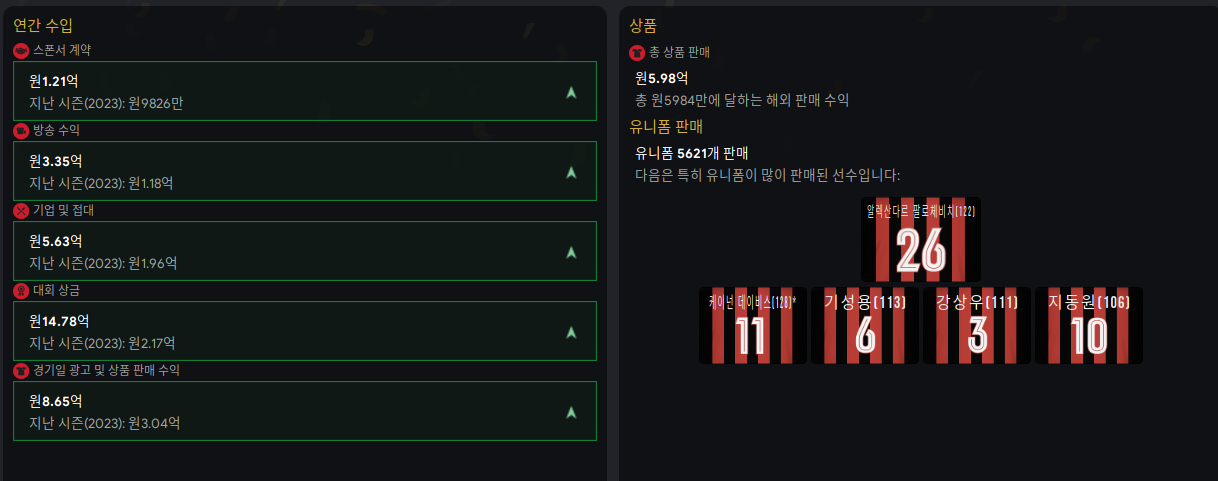 유니폼 판매 수익...