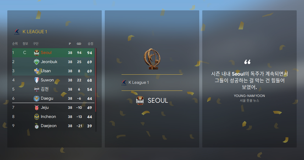 리그 압도적 우승..