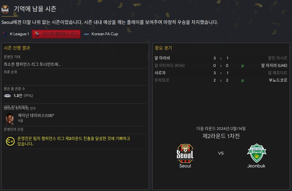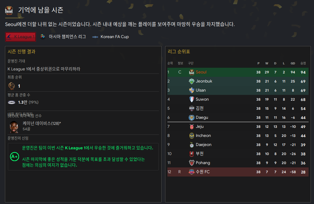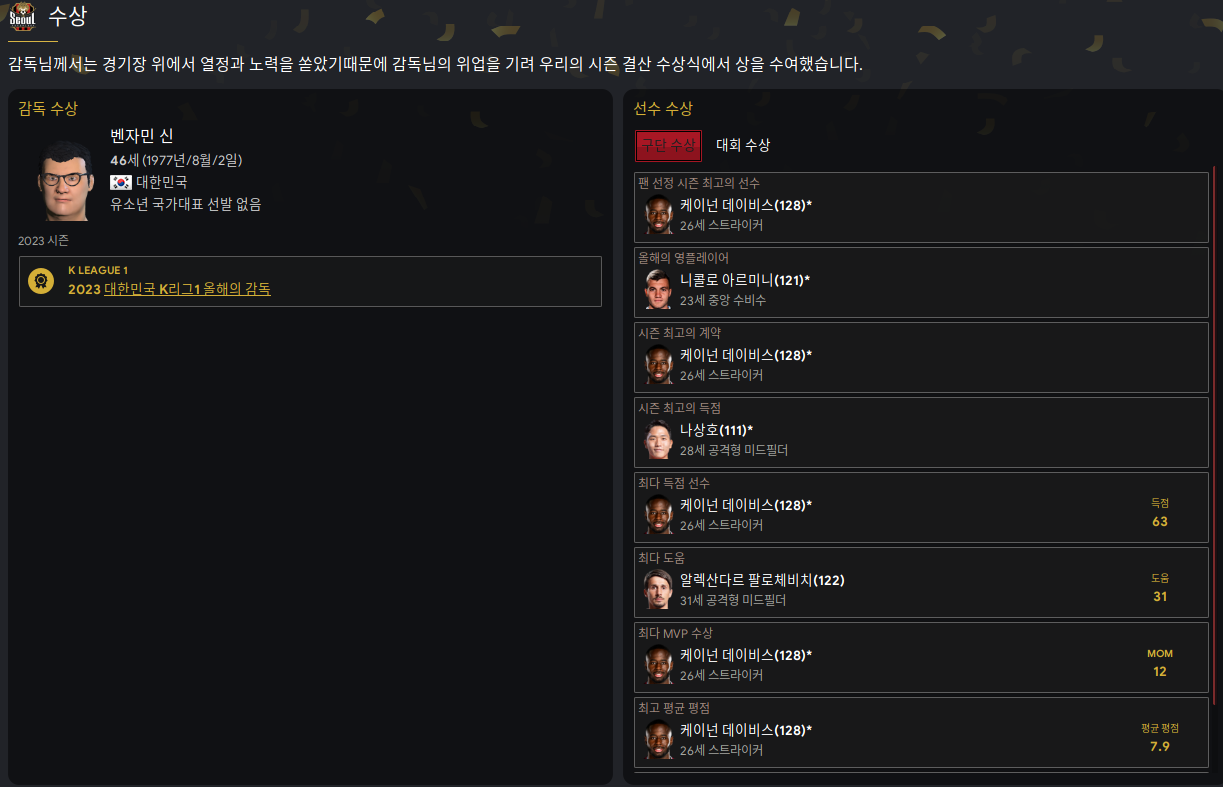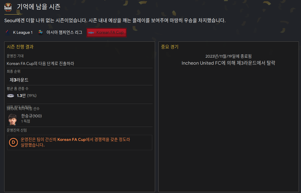 | FM2023 - 축구감독 생존기 S1 (1) (0) | 2023.08.31 |