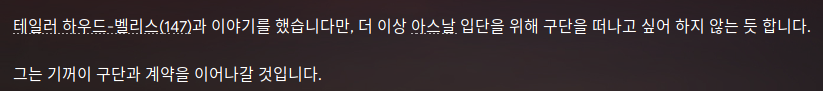 아스날 오퍼를 거절했더니 면담이 들어와 영입선수들을 보고 판단하라고 했다.