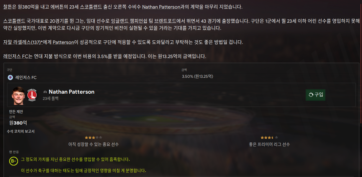 이 선수 영입했더니 이게 떴다. 무조건 너에게 오는 오퍼는 거절이다.