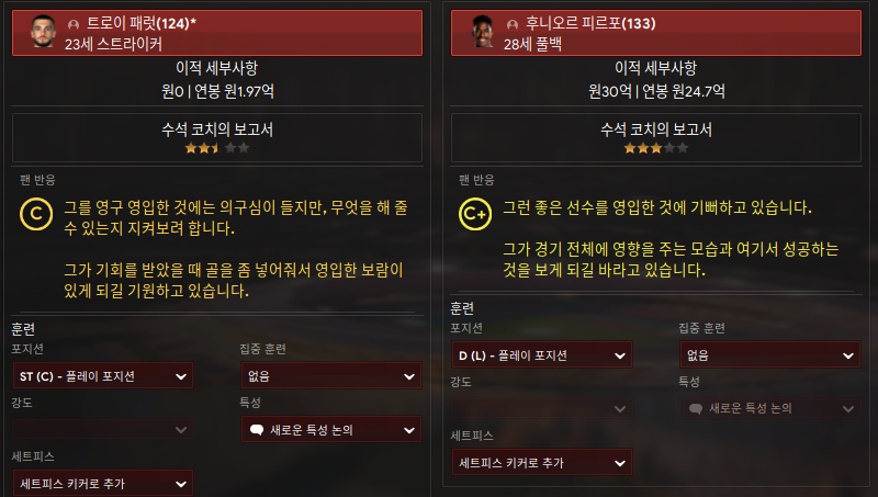 딱 두명... 남은 이적자금 싹 다 써버렸다.