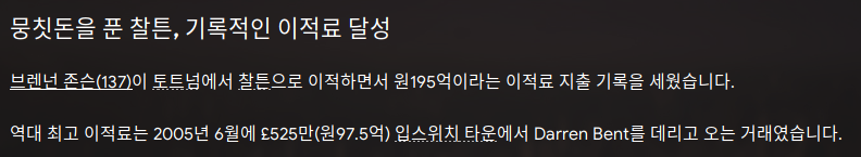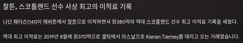 스코틀랜드 사상 이적료 기록..