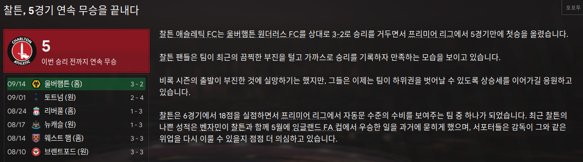 FM2023 - 축구감독 생존기 [23/24] 찰튼 애슬레틱