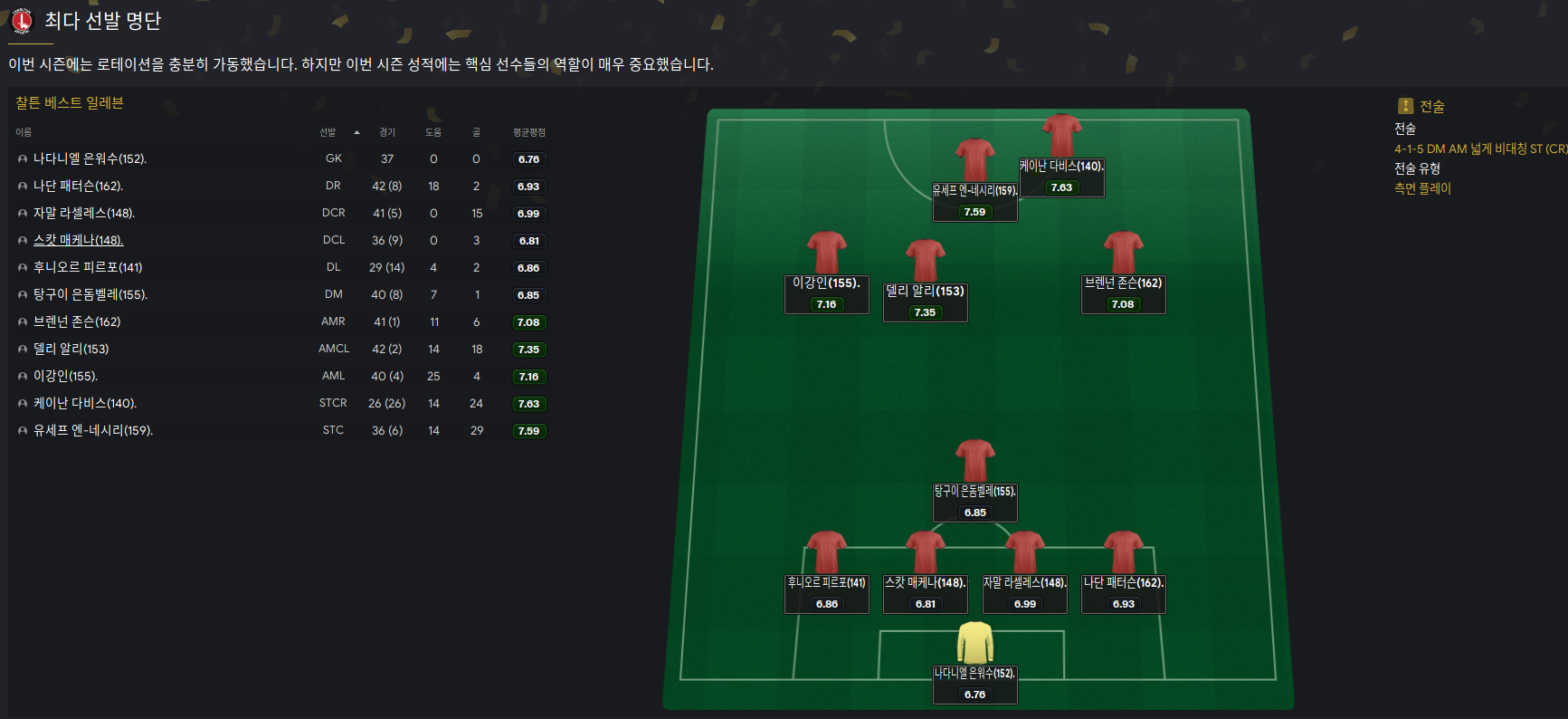물론 약한 포지션은 영입이 필요. DR, AMR/L .. 양현준이 너무 안큰다. 이강인을 영입 준비 중이다.