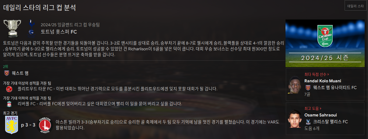 토트넘 리그컵 우승, 이전 시즌에서는 FA컵 우승하더니 이번에는 리그컵 우승이다.