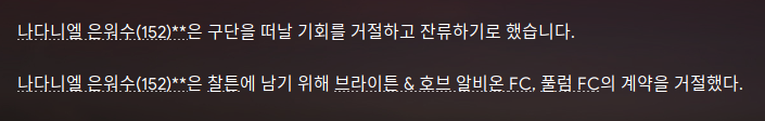 네시리.. 공격수는 기존 공격수를 활용할 예정이었으나, 현재 연패라 .. 영입했다. 골키퍼를 바꿔야 했을까? 반시즌 살아남으면 겨울이적 때 알아보자.