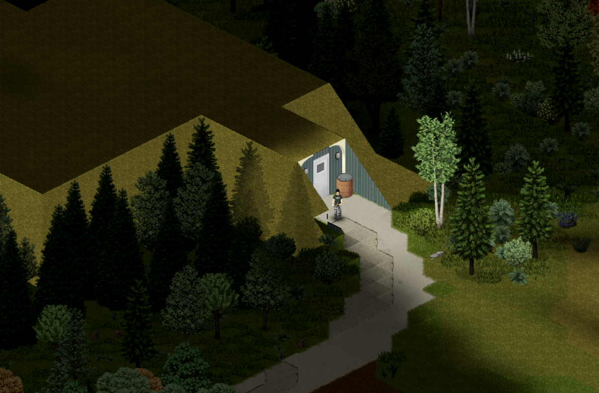 알람을 설정하지 않아 또 정오를 넘겼다。 오늘은 짐을 정리해야 겠다。 짐정리하면서 뒷문으로 통하는 통로를 발견했다。 사다리도 발견했으나 위에 해치가 아직 건설을 하지 못했던 것 같다。밖에서 이층을 지어서 다니는 통로를 만들어야 할 것 같다。 뒷문에 금속 바리케이트를 건설했더니 좀비어그로가 끌렸는지 밖에서 연신 노크하고 있다。마저 정리하고 다시 닫았다。 이쪽도 한번 벽을 더 둘러야 할 것 같다。 역시 도끼가 시급하다。