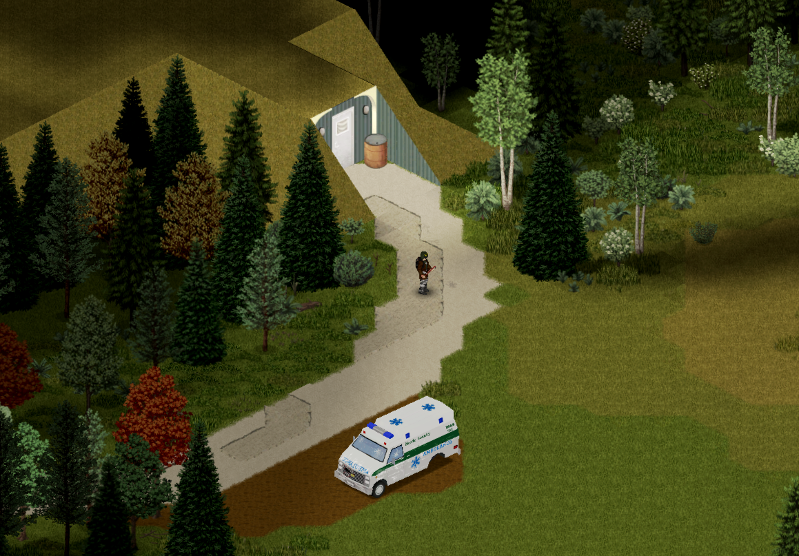 내쪽으로 몰려드는 좀비 몇 마리 쓰러뜨리고 차량 근처로 갔다。 엠블란스는 다행히 차키가 있었고 기름도 충분했다。 아쉽게도 장갑차는 차키가 없었다。 아직 기술이 없어 시동장치를 켜지 못한다。 엠블란스의 단점은 엔진상태가 빨간상태였는데 어쨋든 그걸 몰고 벙커로 되돌아왔다。