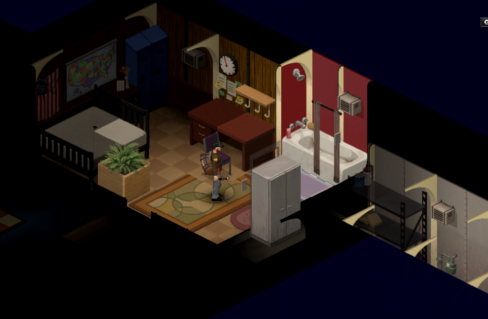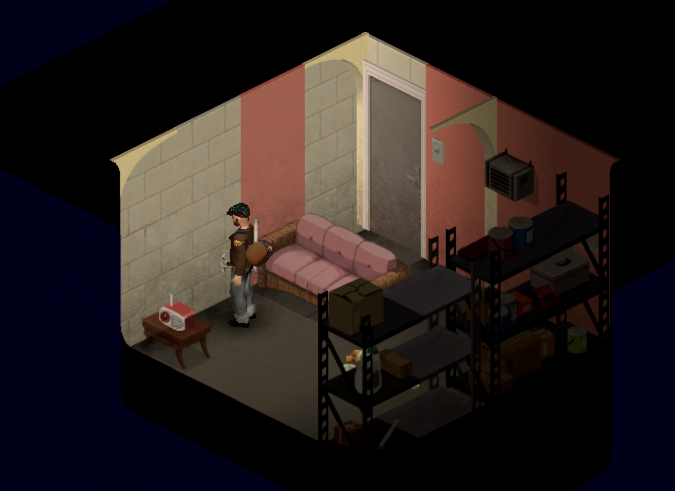 구석에 있는 방에 거실에 있던 쇼파를 가져왔다. 침대가 구해지는 데로 어느정도 해결할 셈이다. 여기있던 간이 침대는 가볍기 때문에 파밍하러 나갈 때 사용예정이다. 원래 침대방 문 중 직선거리로 되어 있는 구역은 금속 철제가구로 입구를 막았다.